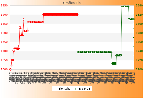 Elo FIDE: 1810    Migliore: 1839  (Marzo 2025)    Peggiore: 1713  (Ottobre 2022)