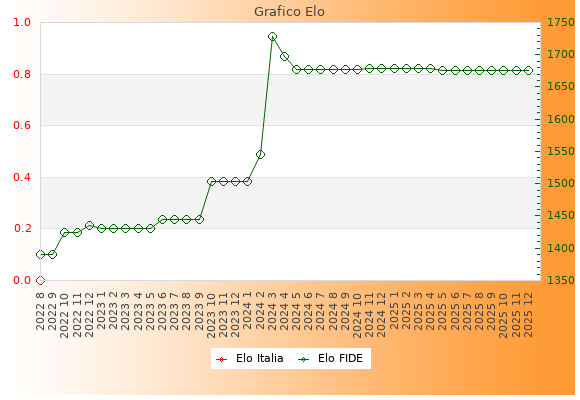 Elo FIDE: 1739    Migliore: 1739  (Dicembre 2025)    Peggiore: 1132  (Gennaio 2024)