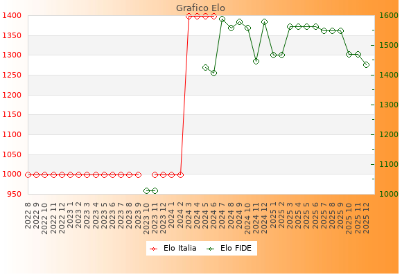 Elo FIDE: 2090    Migliore: 2219  (Luglio 2023)    Peggiore: 1131  (Gennaio 2016)