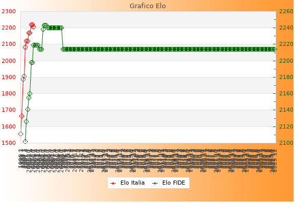 Elo FIDE: 1634    Migliore: 1634  (Dicembre 2025)    Peggiore: 1327  (Maggio 2023)