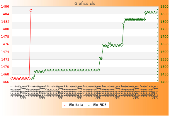 Elo FIDE: 1863    Migliore: 1863  (Dicembre 2025)    Peggiore: 1421  (Maggio 2019)
