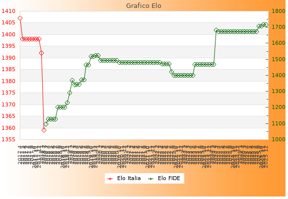 Elo Italia: 1864    Migliore: 1864  (Dicembre 2025)    Peggiore: 1695  (Luglio 2000)