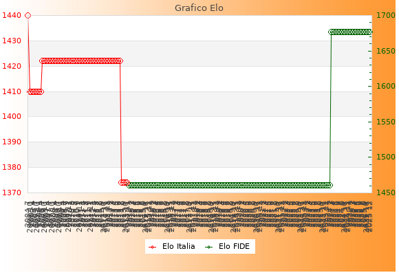 Elo FIDE: 1677    Migliore: 1677  (Dicembre 2025)    Peggiore: 1461  (Gennaio 2015)