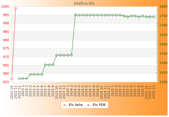 Elo FIDE: 1746    Migliore: 1756  (Marzo 2024)    Peggiore: 1418  (Dicembre 2022)