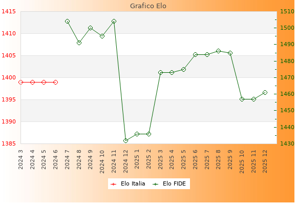 Elo FIDE: 1461    Migliore: 1504  (Novembre 2024)    Peggiore: 1432  (Dicembre 2024)
