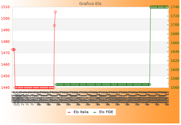 Elo FIDE: 1740    Migliore: 1740  (Dicembre 2025)    Peggiore: 1567  (Agosto 2014)
