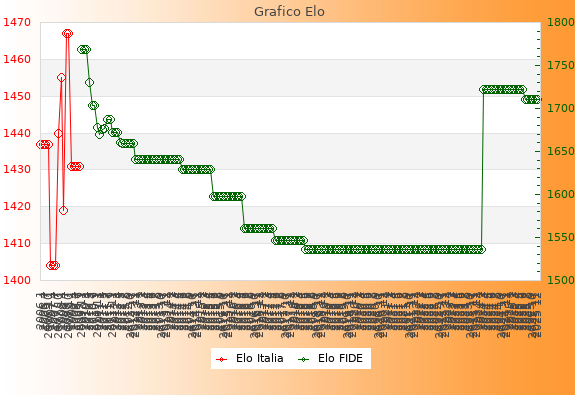 Elo FIDE: 1711    Migliore: 1769  (Marzo 2010)    Peggiore: 1536  (Giugno 2018)