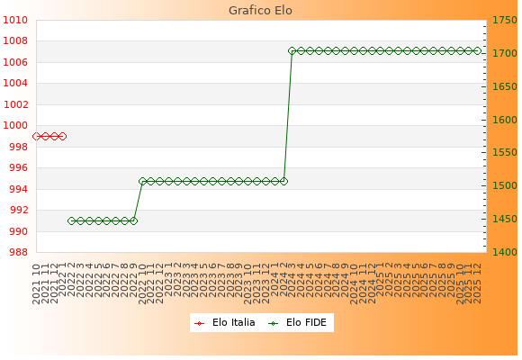 Elo FIDE: 1704    Migliore: 1704  (Dicembre 2025)    Peggiore: 1447  (Febbraio 2022)