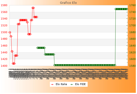 Elo FIDE: 1749    Migliore: 1749  (Dicembre 2025)    Peggiore: 1582  (Novembre 2014)