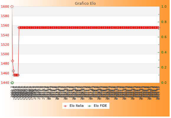 Elo Italia: 1556    Migliore: 1600  (Luglio 2001)    Peggiore: 1456  (Luglio 2002)