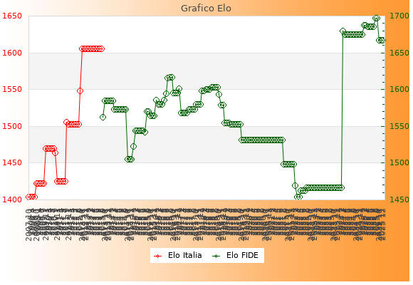 Elo FIDE: 1667    Migliore: 1697  (Settembre 2025)    Peggiore: 1454  (Marzo 2022)