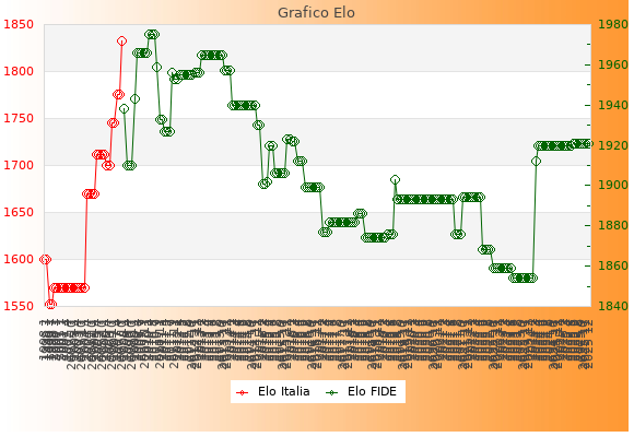 Elo FIDE: 1921    Migliore: 1975  (Luglio 2010)    Peggiore: 1854  (Giugno 2023)