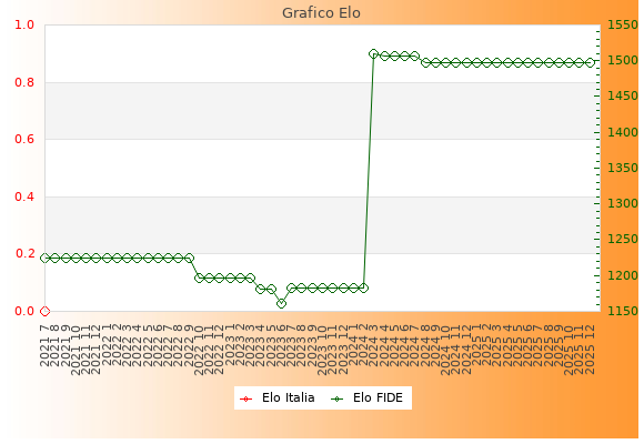 Elo FIDE: 2064    Migliore: 2139  (Marzo 2025)    Peggiore: 1096  (Agosto 2019)