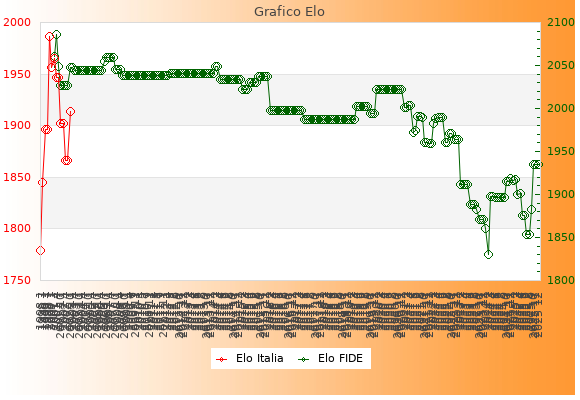 Elo FIDE: 1935    Migliore: 2086  (Aprile 2001)    Peggiore: 1830  (Febbraio 2024)