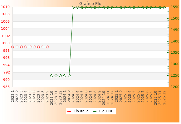 Elo FIDE: 1547    Migliore: 1549  (Aprile 2024)    Peggiore: 1249  (Ottobre 2023)