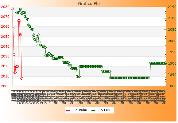 Elo FIDE: 1902    Migliore: 2139  (Luglio 2002)    Peggiore: 1837  (Giugno 2019)