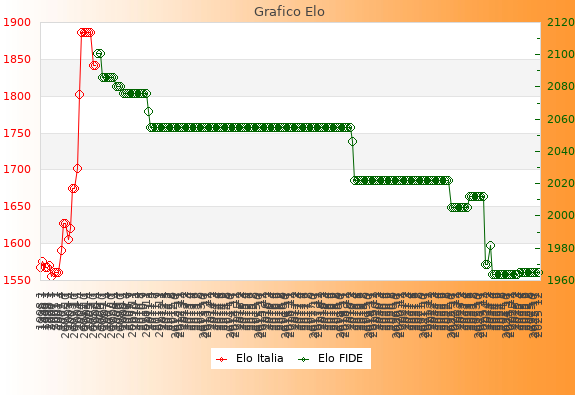 Elo FIDE: 1965    Migliore: 2101  (Luglio 2006)    Peggiore: 1964  (Aprile 2024)