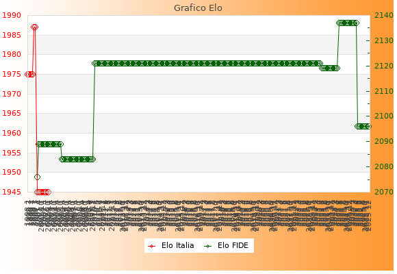 Elo FIDE: 2096    Migliore: 2137  (Aprile 2025)    Peggiore: 2076  (Gennaio 2001)