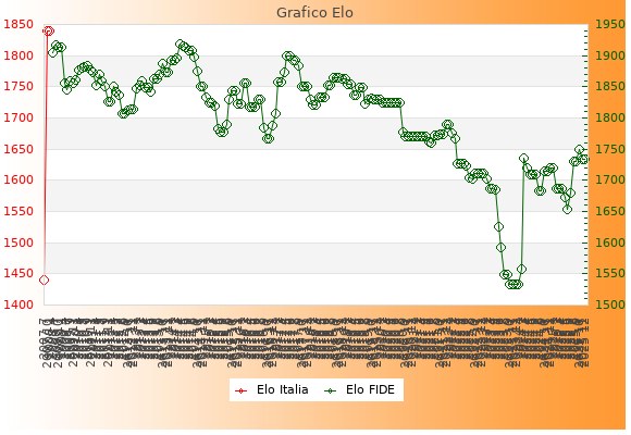Elo FIDE: 1734    Migliore: 1919  (Aprile 2014)    Peggiore: 1534  (Ottobre 2023)