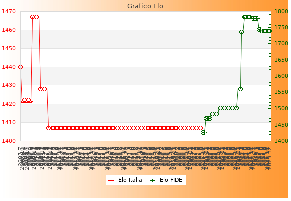 Elo FIDE: 1740    Migliore: 1783  (Ottobre 2024)    Peggiore: 1427  (Ottobre 2021)