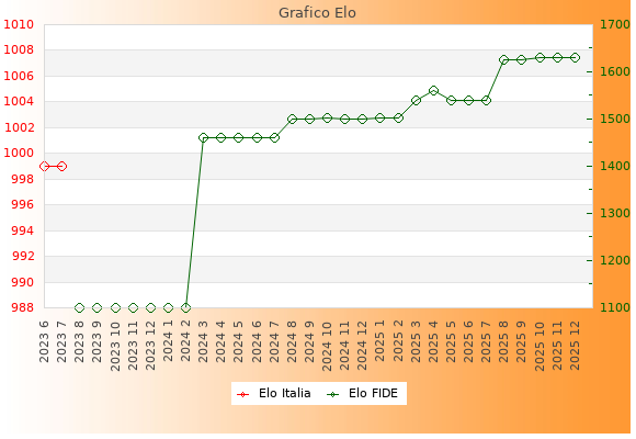 Elo FIDE: 1630    Migliore: 1630  (Dicembre 2025)    Peggiore: 1101  (Agosto 2023)