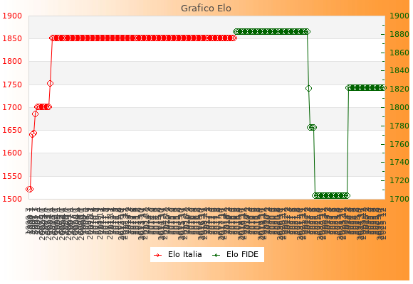 Elo FIDE: 1822    Migliore: 1883  (Febbraio 2022)    Peggiore: 1704  (Luglio 2022)