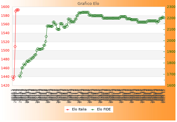 Elo FIDE: 2202    Migliore: 2251  (Agosto 2018)    Peggiore: 1680  (Novembre 2011)