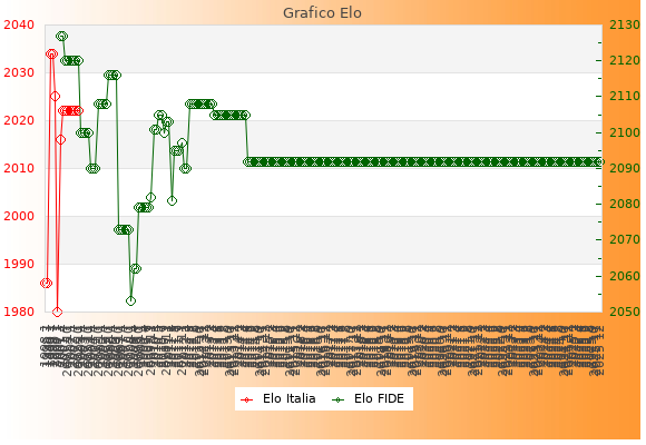 Elo Italia: 1604    Migliore: 1604  (Dicembre 2025)    Peggiore: 1504  (Gennaio 1998)