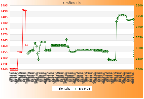 Elo FIDE: 1736    Migliore: 1755  (Marzo 2025)    Peggiore: 1543  (Luglio 2023)