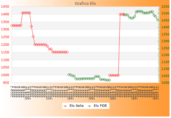 Elo FIDE: 1489    Migliore: 1502  (Luglio 2025)    Peggiore: 1127  (Marzo 2022)