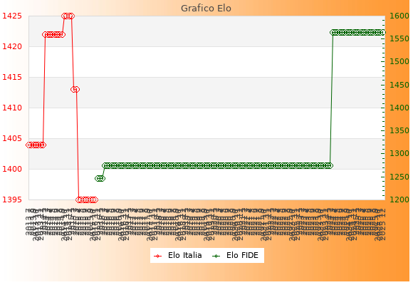 Elo FIDE: 1564    Migliore: 1564  (Dicembre 2025)    Peggiore: 1246  (Dicembre 2015)