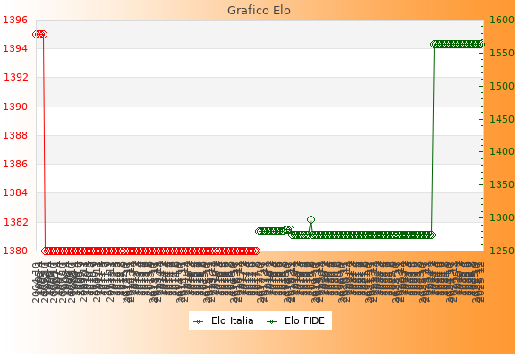 Elo FIDE: 1564    Migliore: 1564  (Dicembre 2025)    Peggiore: 1274  (Dicembre 2018)