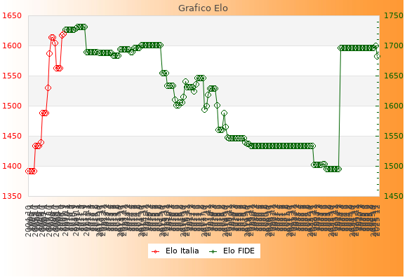 Elo FIDE: 1644    Migliore: 1644  (Dicembre 2025)    Peggiore: 1217  (Gennaio 2023)