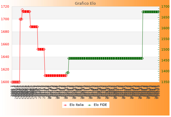Elo FIDE: 1676    Migliore: 1676  (Febbraio 2026)    Peggiore: 1391  (Dicembre 2014)