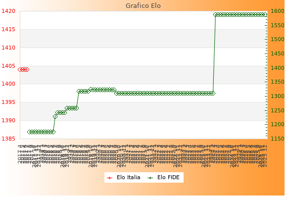 Elo FIDE: 1587    Migliore: 1587  (Dicembre 2025)    Peggiore: 1174  (Agosto 2017)