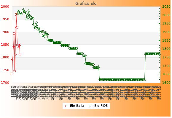 Elo FIDE: 1771    Migliore: 2033  (Gennaio 2004)    Peggiore: 1618  (Novembre 2018)