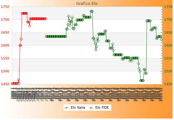 Elo Italia: 1399    Migliore: 1440  (Luglio 2004)    Peggiore: 1362  (Ottobre 2004)