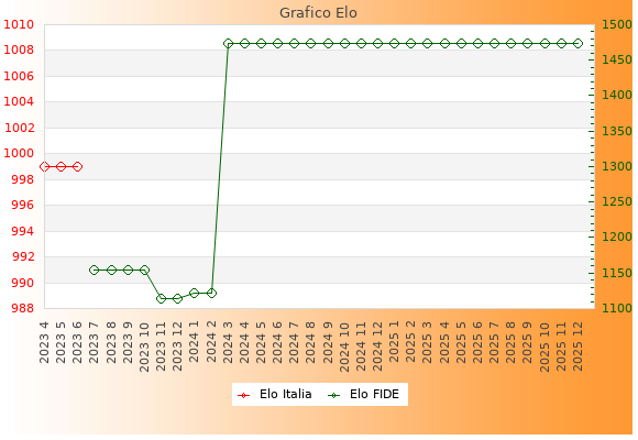 Elo FIDE: 1473    Migliore: 1473  (Dicembre 2025)    Peggiore: 1114  (Novembre 2023)