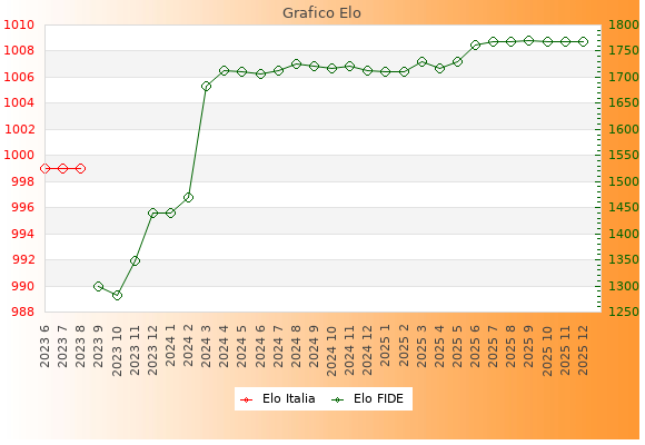 Elo FIDE: 1769    Migliore: 1770  (Settembre 2025)    Peggiore: 1282  (Ottobre 2023)