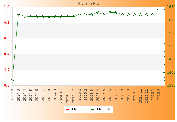 Elo FIDE: 1638    Migliore: 1638  (Febbraio 2026)    Peggiore: 1371  (Febbraio 2024)