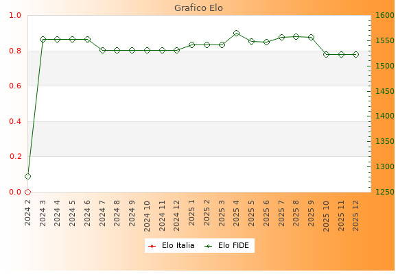 Elo FIDE: 1697    Migliore: 1724  (Novembre 2025)    Peggiore: 1551  (Novembre 2024)