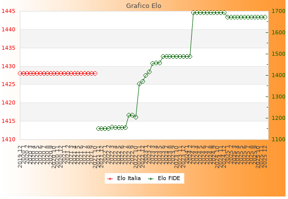 Elo FIDE: 1672    Migliore: 1694  (Dicembre 2024)    Peggiore: 1152  (Novembre 2021)
