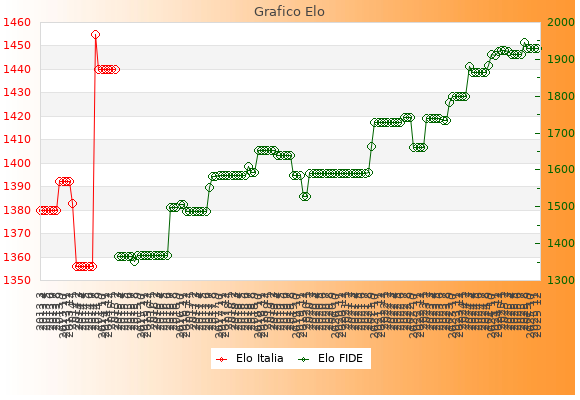 Elo FIDE: 1929    Migliore: 1945  (Agosto 2025)    Peggiore: 1351  (Agosto 2015)
