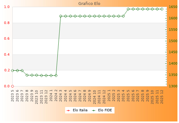Elo FIDE: 1640    Migliore: 1640  (Dicembre 2025)    Peggiore: 1348  (Novembre 2023)