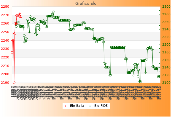 Elo FIDE: 2116    Migliore: 2286  (Ottobre 2012)    Peggiore: 2103  (Giugno 2023)