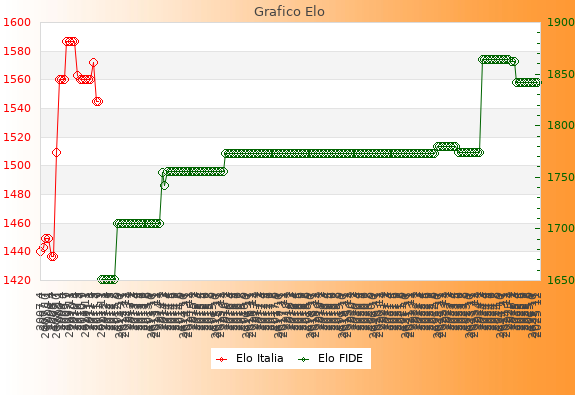 Elo FIDE: 1842    Migliore: 1864  (Gennaio 2025)    Peggiore: 1651  (Novembre 2011)