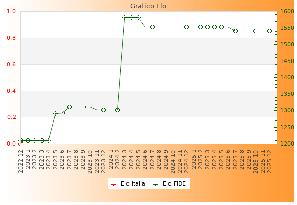 Elo FIDE: 1597    Migliore: 1669  (Settembre 2025)    Peggiore: 1597  (Ottobre 2025)