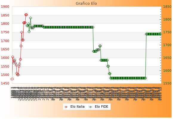 Elo FIDE: 1743    Migliore: 1806  (Ottobre 2006)    Peggiore: 1571  (Novembre 2019)