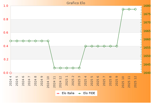 Elo FIDE: 1977    Migliore: 2024  (Marzo 2025)    Peggiore: 1860  (Gennaio 2015)