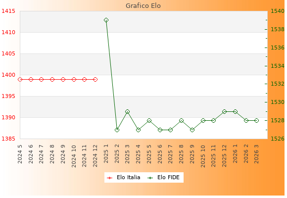 Elo FIDE: 1528    Migliore: 1539  (Gennaio 2025)    Peggiore: 1527  (Febbraio 2025)